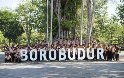 Pramuka SMP N 2 Kalibawang melaksanakan kegiatan hiking ke Candi Borobudur, terletak di Desa Borobudur, Kecamatan Borobudur, Kabupaten Magelang, Propi